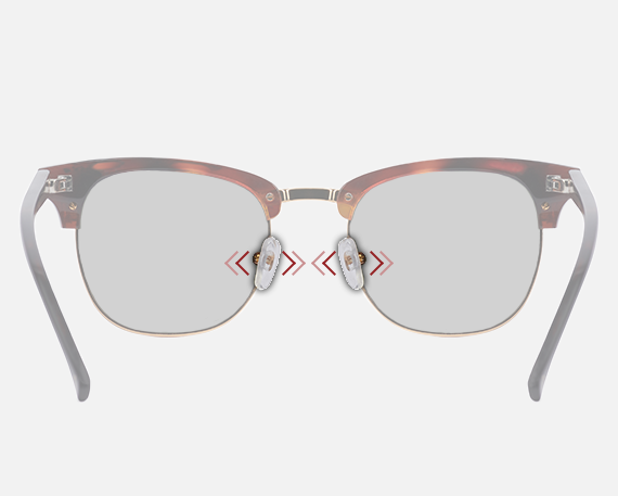 For frames that sit too low, simply pinch the two nose pads inward simultaneously to narrow the gap.