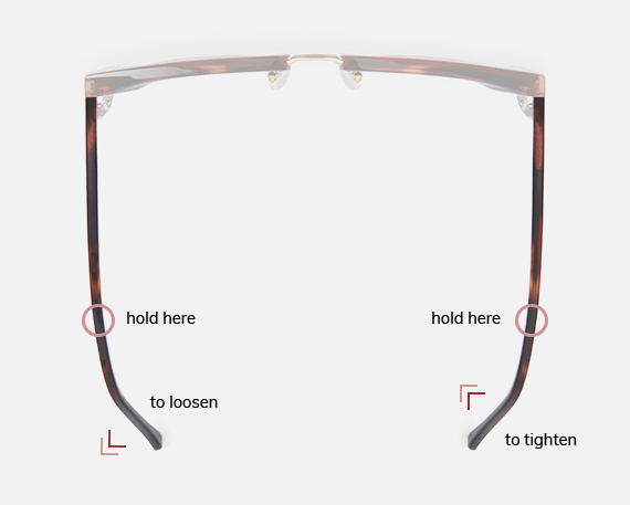 For frames that are slightly too tight, we recommend wearing them for a few days as they will often times adjust on their own. If further adjustment is needed, simply push the temples outward until you find the right fit.